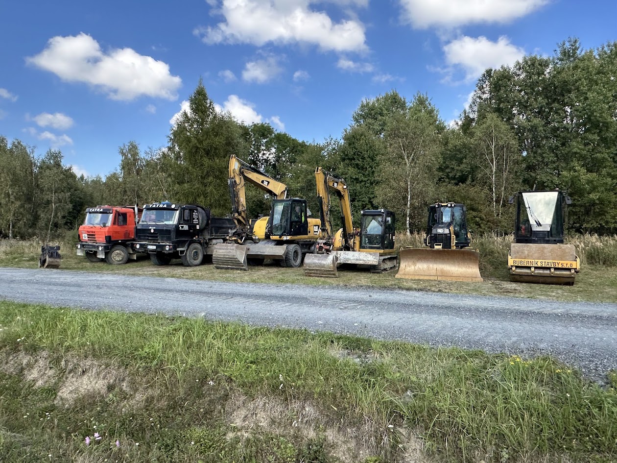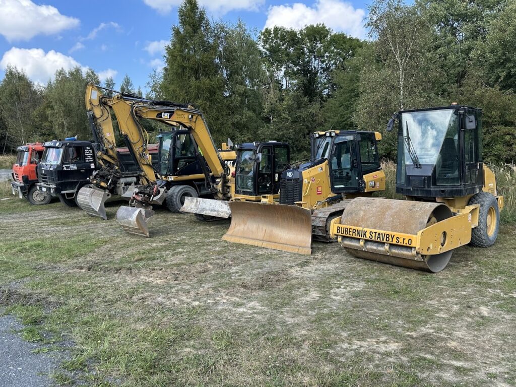 Naše technické zázemí zahrnuje moderní stavební mechanizaci jako jsou kolová a pásová rýpadla Caterpillar vybavená tiltrotátory pro přesnou práci, kráčivé rýpadlo, smykové nakladače, vibrační techniku a široký vozový park sklápěčů Tatra a Volvo s vysokou nosností. Díky tomu zvládáme efektivně i velkoobjemové přesuny materiálu.