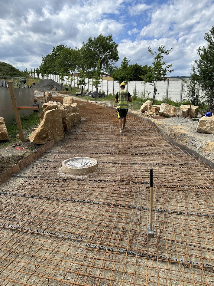 Předmětem díla bylo vybudování nové přístupové komunikace pro pěší včetně kanalizace pro odvod dešťových vod, vodovodu pro závlahu, sdělovacích kabelů a veřejného osvětlení.